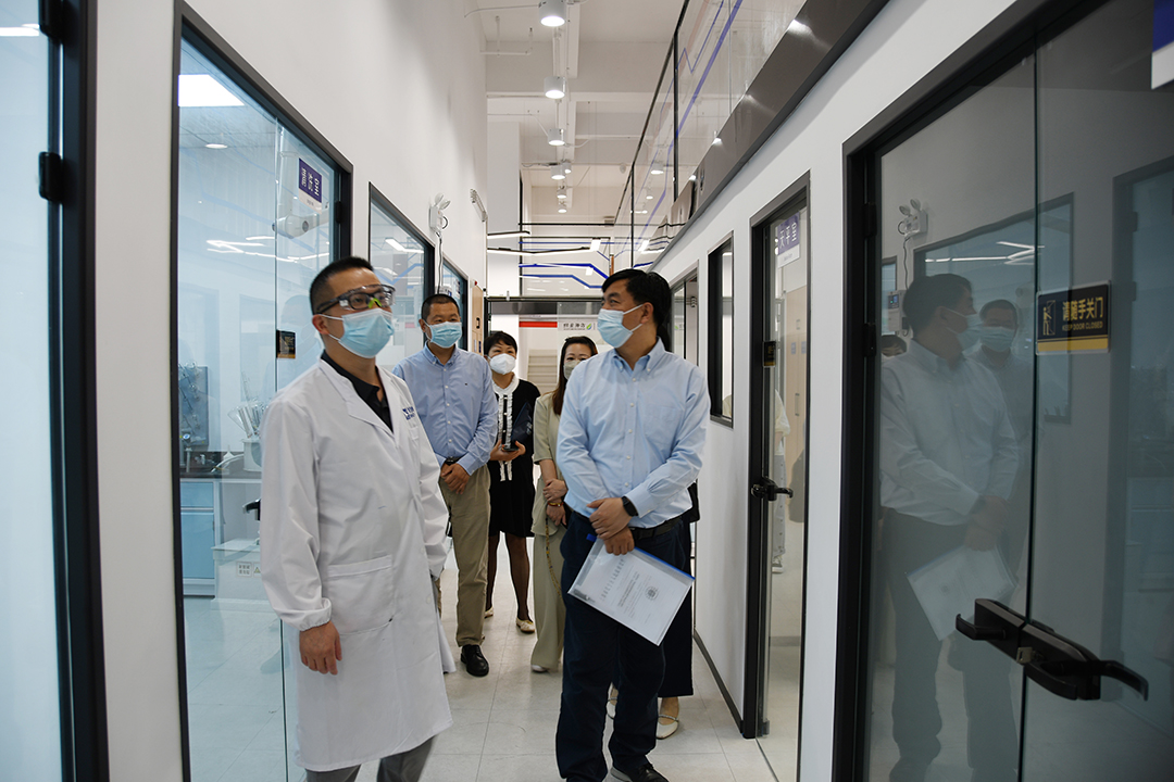 本次负责接待的有上海农帆生物科技有限公司的总经理吴海琴女士和副总经理贾俊超先生,以及研发中心王攀登副主任。王副主任带领领导们视察了实验室,详细介绍了我们的研发仪器设备,赵书记非常关心和关注实验的环保设施与措施,以及三废仓库和三废处理的情况,看到我们完善齐全的相关配套措施,给予了很大的认可。