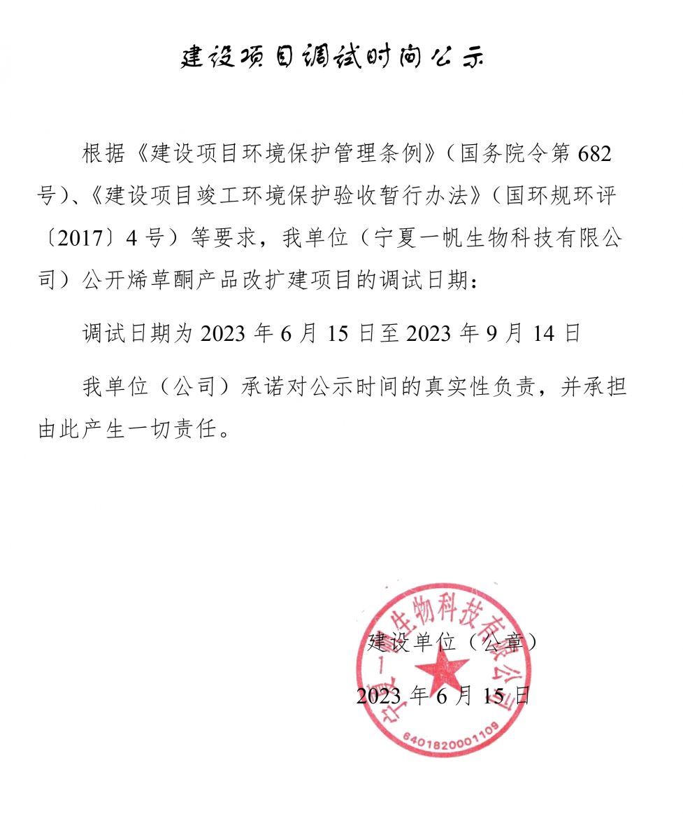 宁夏一帆建设项目调试时间公示